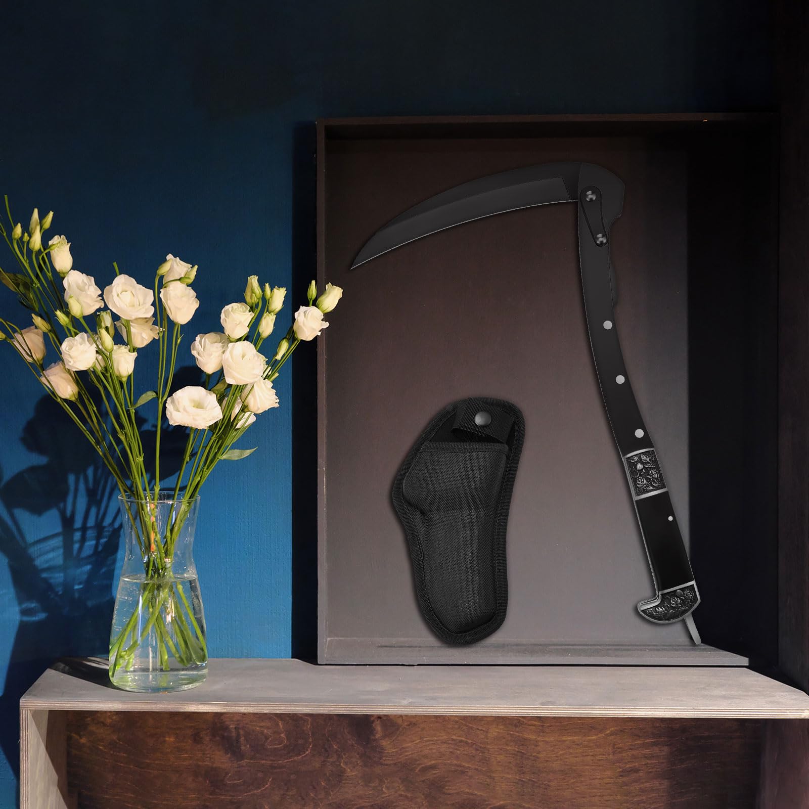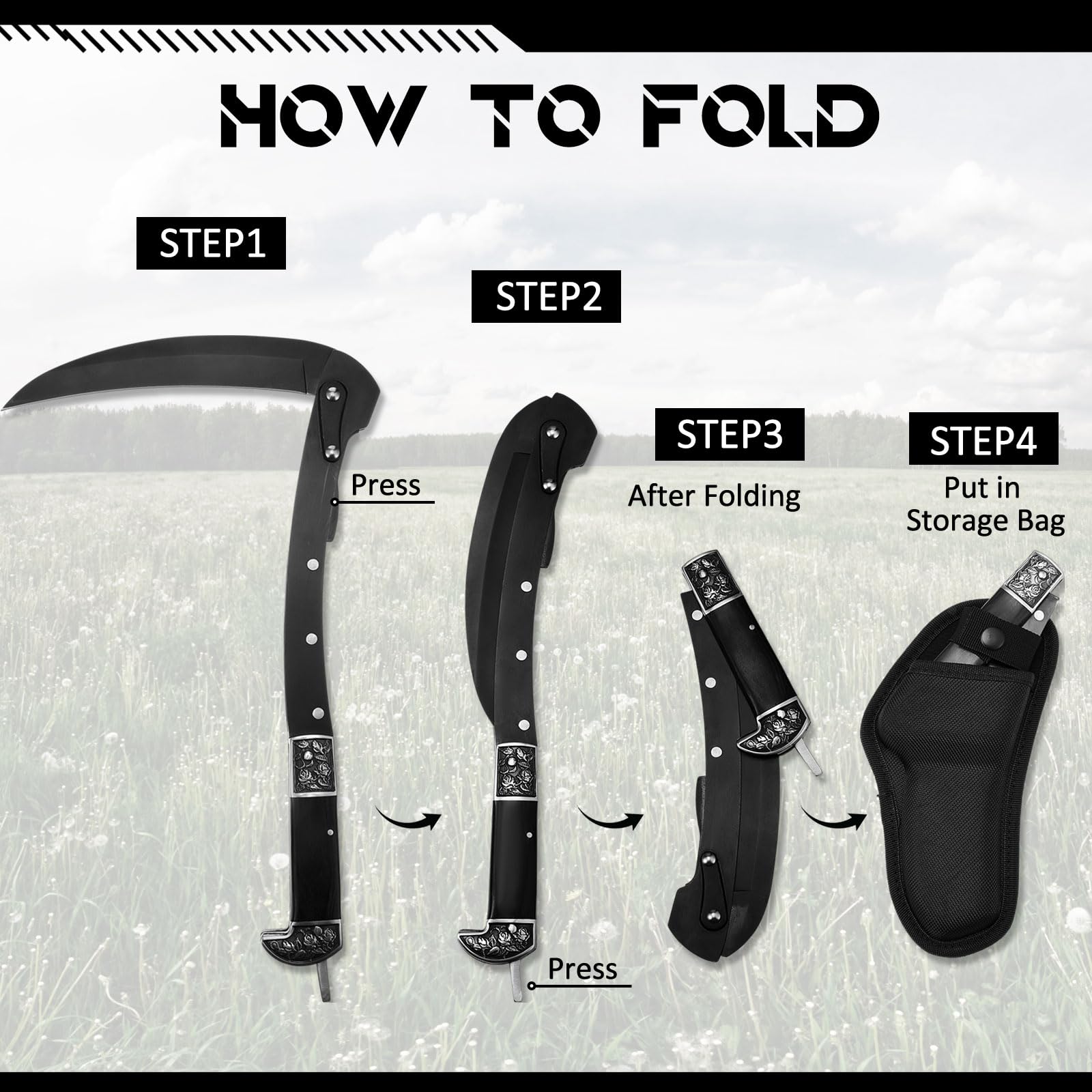 BLACK PORTABLE SHEATHED SHARP FOLDING SICKLE