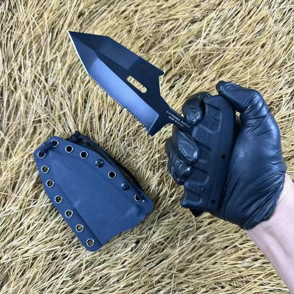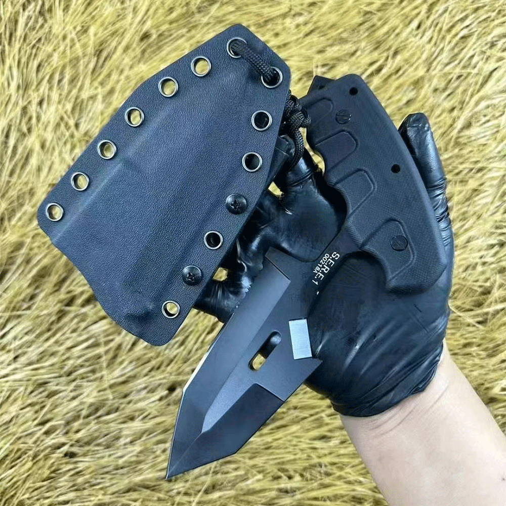 The spear-point blade offers formidable tearing power, while the double-edged design (with one false edge) reduces penetration resistance for superior cutting ability and penetration force. In close-quarters combat, this knife excels at both slashing and stabbing maneuvers.