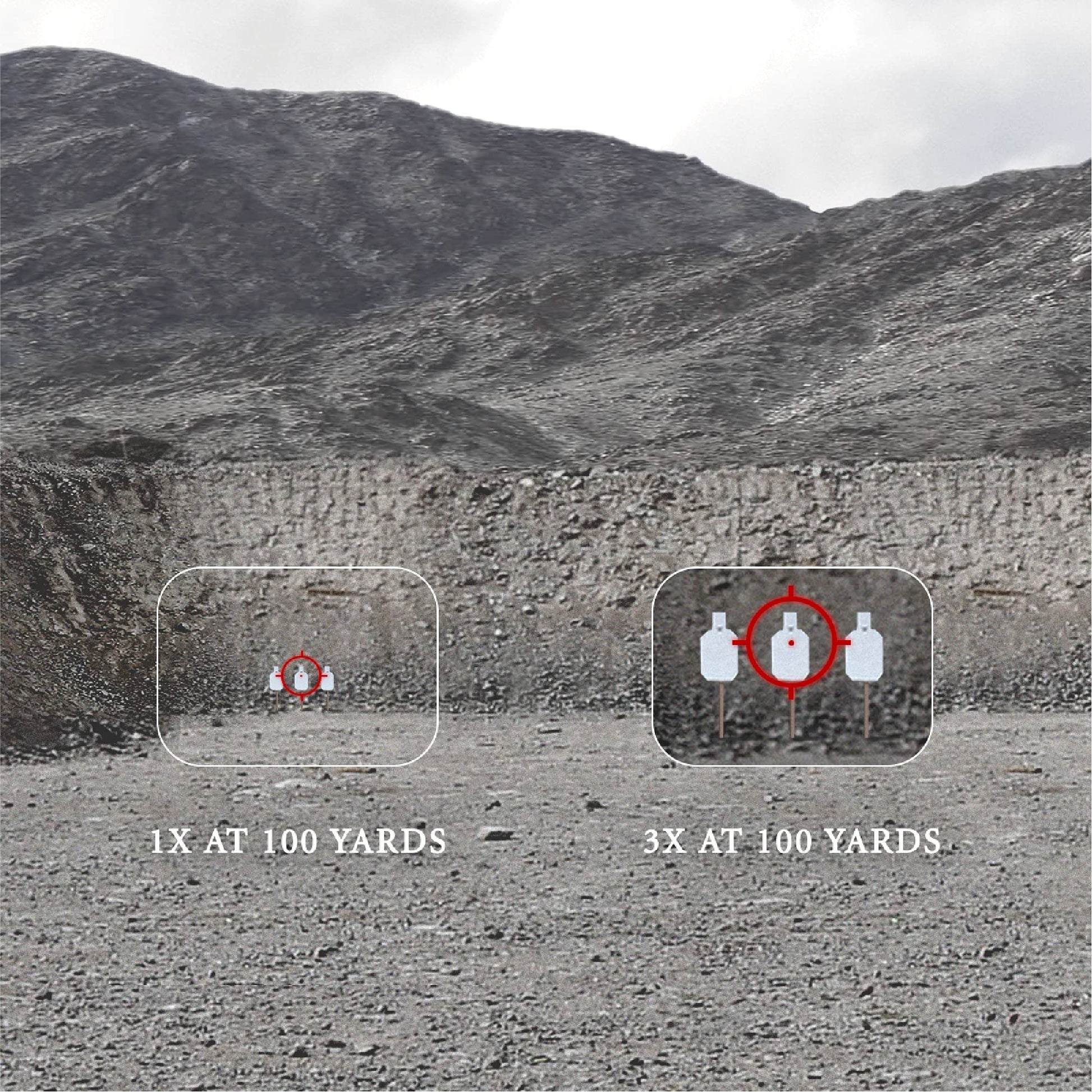 - 1x to 3x Magnification - The ability to transition between the two distances almost instantly and still maintain weapon accuracy