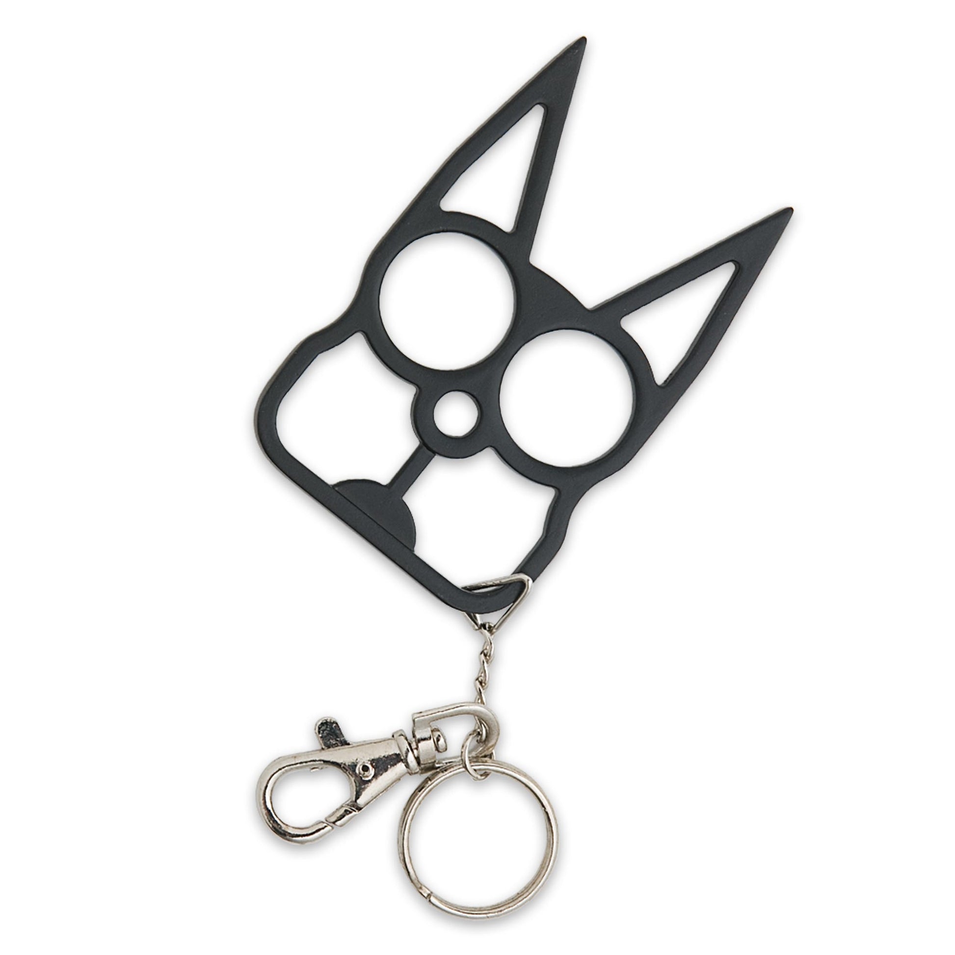 This Black Cat Self Defense tool will calmly hide as a keychain until it needs to protect you. Then, hold it between your knuckles and the metal spikes will deliver punishing blows that even the toughest attacker can't handle! The cat-shaped self-defense tool has a solid metal construction and has both a keyring and a lobster clasp. This is a great gift for wives and girlfriends