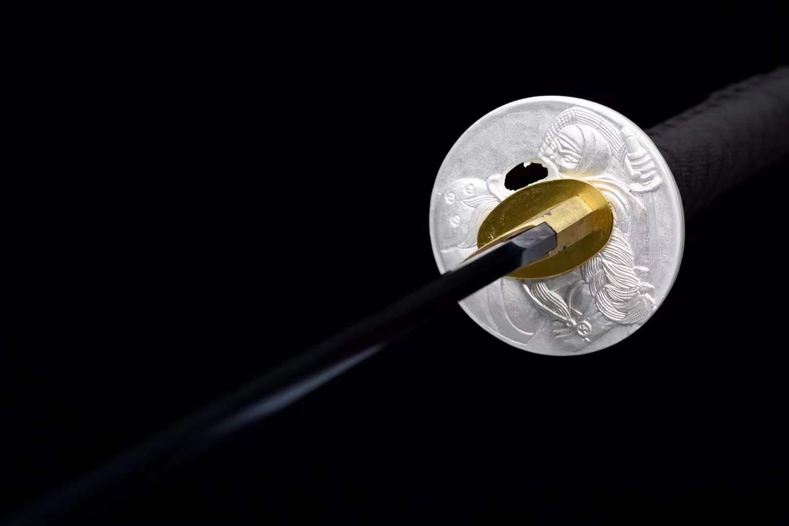 Hand Forged Japanese Samurai Katana 知恵を知る Spring Steel Roasted Blue Push Mill