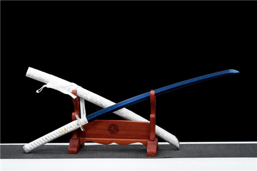 Hand Forged Japanese Samurai Katana Lobelia High Manganese Steel Baked Blue Blade