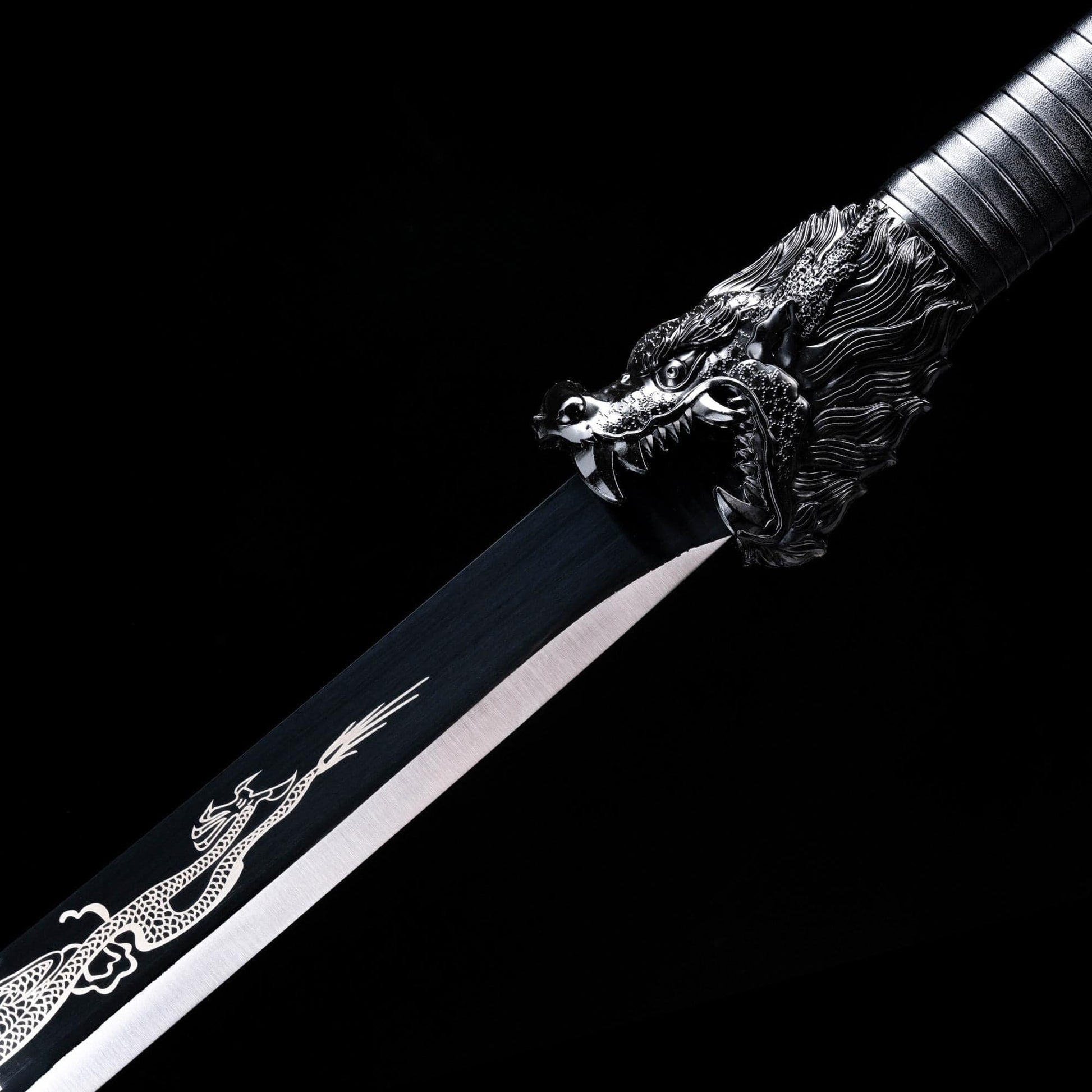 Handmade Dragon Battle Blade Manganese Steel Chinese Sword Black & White