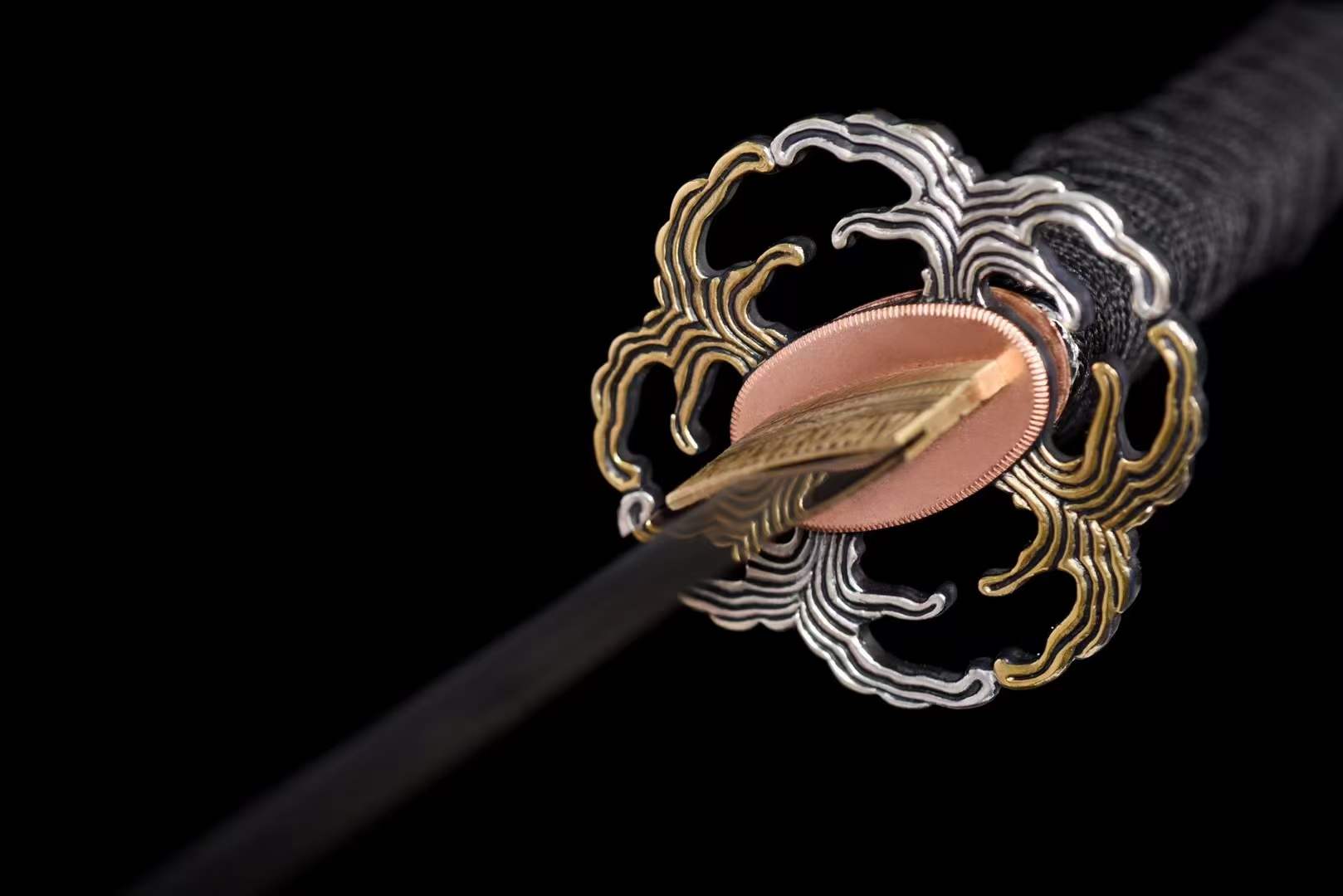 - Blade made of patterned steel, core iron T10.