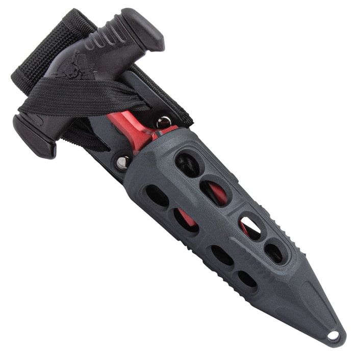 - It has a metallic red and black, 5 3/4” 2Cr13 cast stainless steel blade with an open twisted design giving you multiple edges
